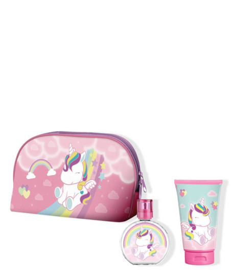 El neceser de Eau my Unicorn que te acompañará a todas partes, incluye una fragancia en formato 50 ml con notas dulces, afrutadas y florales, y un gel de ducha de 100 ml..