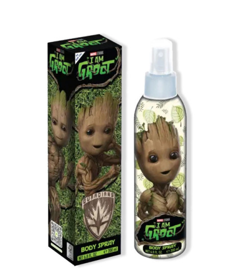 Groot Body Spray es la colonia corporal infantil en formato 200 ml con una explosión dulce con notas de vainilla para llevar contigo la esencia del árbol más adorable del universo de Marvel.
