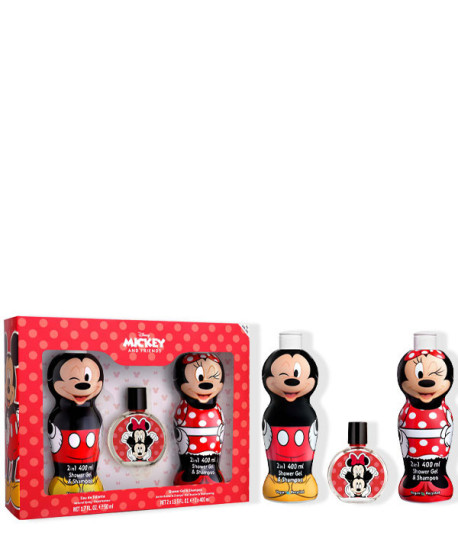 Hasta 15 días naturalesMickey And Minnie Estuche de Disney incluye una fragancia cítrica y 2 geles de ducha y champú con fórmula vegana, con más de 90% de ingredientes de origen natural y en botellas de plástico 100% reciclado.