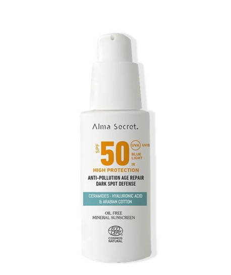Hasta 15 días naturalesProtector Solar SPF50 de Alma Secret es la Crema solar facial natural para todo tipo de pieles.