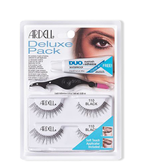 Unas pestañas en un pack disponible para todos. Este Kit de Ardell Deluxe Pack 110 (Negro) contiene el Adhesivo DUO, el adhesivo más vendido a nivel mundial perfecto para aplicar tus pestañas postizas de forma fácil, rápida y segura.También incluye 2 pares de pestañas naturales con las tiras número 1 más vendidas.