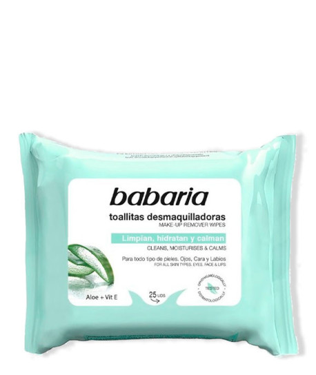 Hasta 15 días naturalesLas toallitas desmaquilladoras con Aloe Vera de Babaria tienen un efecto antioxidante que actúa contra el envejecimiento de la piel.