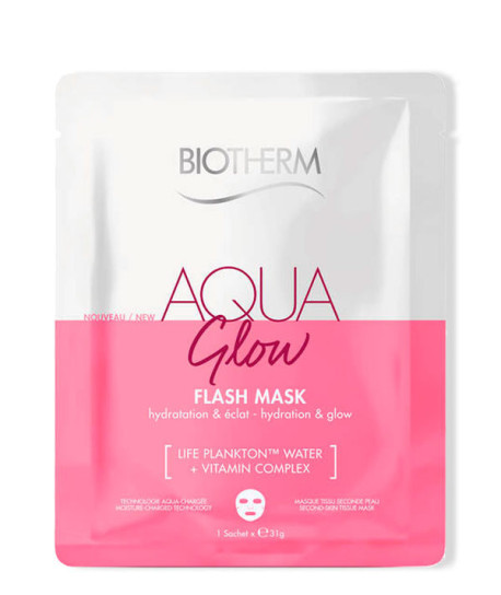 Hasta 15 días naturalesAQUA GLOW flash mask de Biotherm es una mascarilla facial de uso único con efecto hidratante e iluminador.