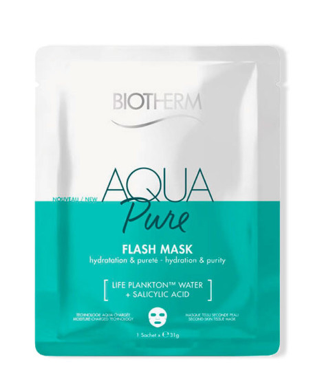 Hasta 15 días naturalesAQUA PURE flash mask de Biotherm es una mascarilla facial de uso único con efecto hidratante y purificante.