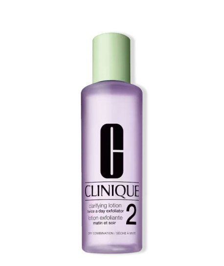 Hasta 15 días naturalesLa Loción Clarificante 2 de Clinique libera la piel de la suciedad, contaminación y células muertas. Minimiza los poros. La piel absorbe mejor su tratamiento y se vuelve más resistente a las impurezas. Se encuentra más sana y más joven. Reformulada por dermatólogos para lograr la máxima comodidad en tu piel, sin secarla.