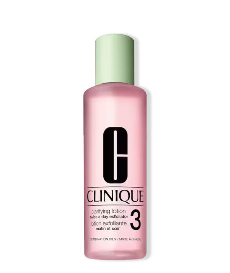 Hasta 15 días naturalesLa loción clarificante 3 de Clinique libera la piel de la suciedad, exceso de grasa, contaminación y células muertas. Minimiza los poros. La piel absorbe mejor su tratamiento y se vuelve más resistente a las impurezas. Se encuentra más sana y más joven. Reformulada por dermatólogos para lograr la máxima comodidad en tu piel, sin secarla.