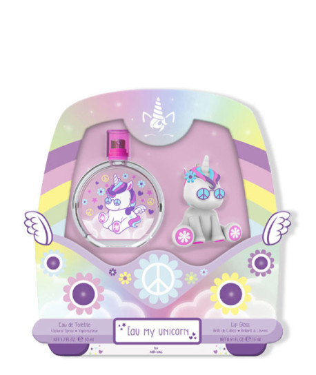 Un estuche inspirado en la magia y la fantasia de los unicornios, cuenta con un Eau de Toilette dulce y un lip gloss con el que hidratar los labios profundamente.