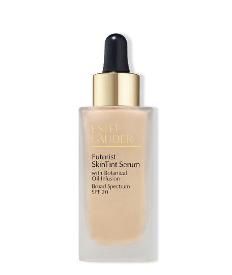 Futurist Skin Tint Serum SPF20 es la base de maquillaje de base con Infusión de Aceite Botánico de Estée Lauder.
