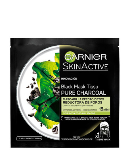 Hasta 15 días naturalesGarnier Mask Tissu Black Pure Charcoal Mascarilla Efecto Detox Reductora de Poros. La nueva mascarilla hidratante efecto detox con algas negras y ácido hialurónico, es una bomba de eficacia para la piel con poros visibles.