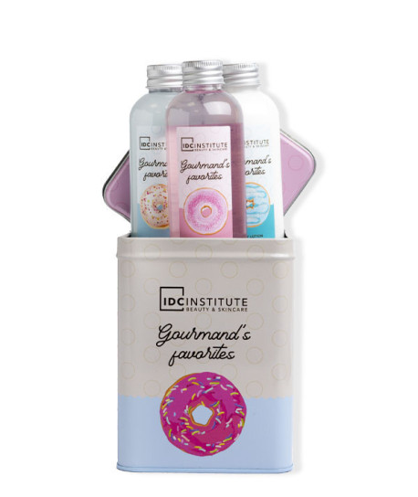 Se trata de una caja metálica con productos de cuidado personal y deliciosos aromas a repostería y donuts.