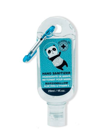 Gel hidroalcohólico e higienizante de manos en formato mini y con mosquetón. Ideal para llevar colgado en la mochila.