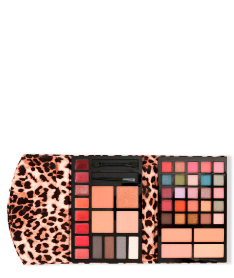 El set contiene: 29 sombras de ojos + 8 labiales + 4 coloretes + 4 bronceadores + aplicadores.