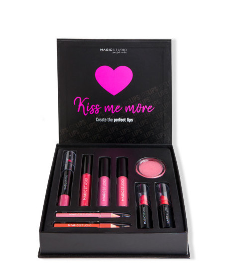 En tonos naranjas y rojos, llena tus labios de color, dibújalos y consigue el efecto que desees con todos los productos del kit. Todo ello en formato líquido o en gloss.