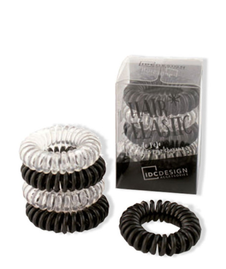 Unos coleteros transparentes y negros que, gracias a su diseño, no dejan marcas y no enredan el cabello.