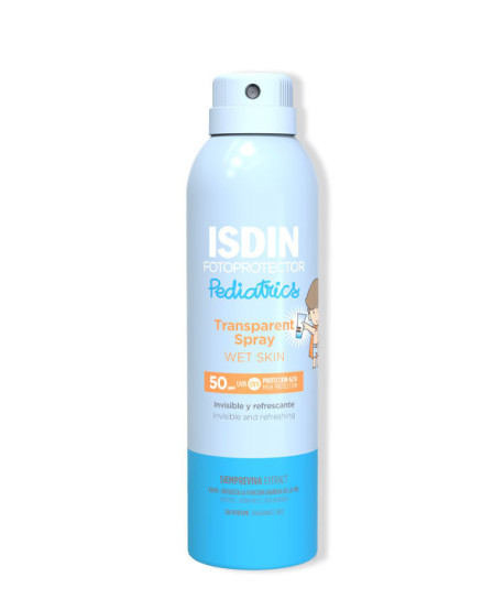 Hasta 15 días naturalesTransparent Spray Wet Skin Pediatrics SPF50 es el protector solar invisible en spray de ISDIN para la piel de niños y bebés.