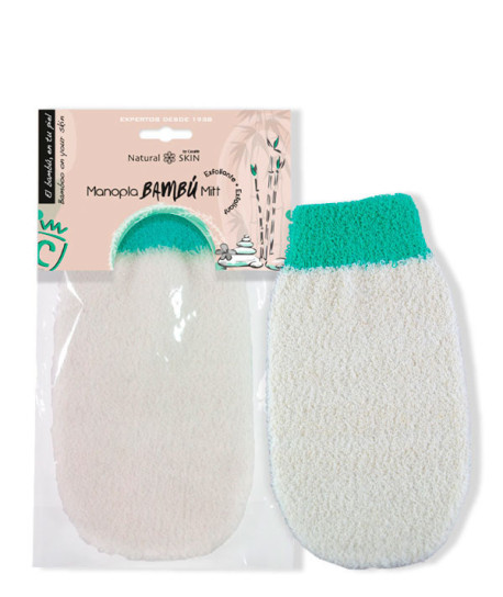 Guante exfoliante con fibras de bambú para renovar tu piel y dejarla brillante y suave.