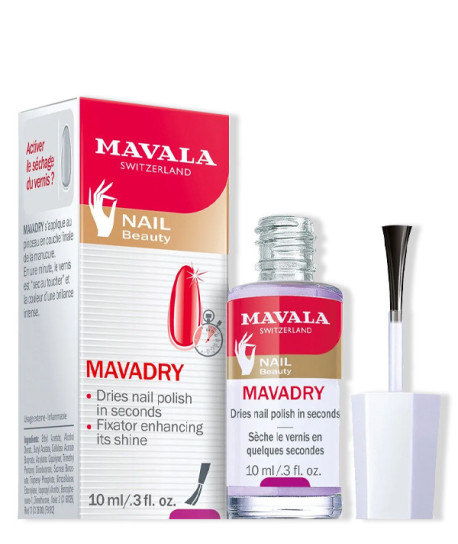 Mavadry de Mavala seca el esmalte de uñas en segundos (touch-dry): ahorrarás muchísimo tiempo de manicura. Además, mejorará el color y dará un brillo protector que evita que el esmalte de uñas se astille.