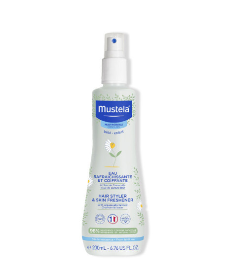 - El 95% de los padres de los padres está de acuerdo en que el agua de peinado Mustela desenreda el cabello.
