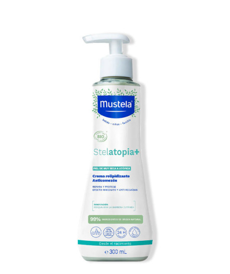 Hasta 15 días naturalesCrema relipidizante Stelatopia+ anti-rascado de Mustela certificada BIO para la dermatitis atópica con principios activos emolientes. Alivio eficaz para pieles atópicas. Tranquilidad para ti. La crema Stelatopia+ está diseñada específicamente para pieles extremadamente secas y propensas a la dermatitis. Es perfecta para el bebé desde el nacimiento* y para toda la familia.
