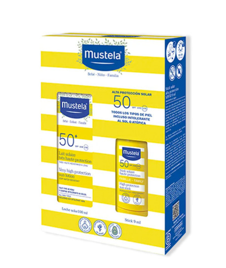 Hasta 15 días naturalesPack Leche Solar + Stick SPF50 es el nuevoset de Mustela que ofrece una leche solar con un factor de protección 50 y un stick también con SPF50, con estos productos protegeremos la piel de toda la familia.