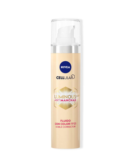 Hasta 15 días naturalesNivea Cellular Luminous 630º Antimanchas Fluido con Color SPF20 que unifica el tono de la piel, previene yreduce las manchasy ofrece protección frente al sol y el fotoenvejecimiento.