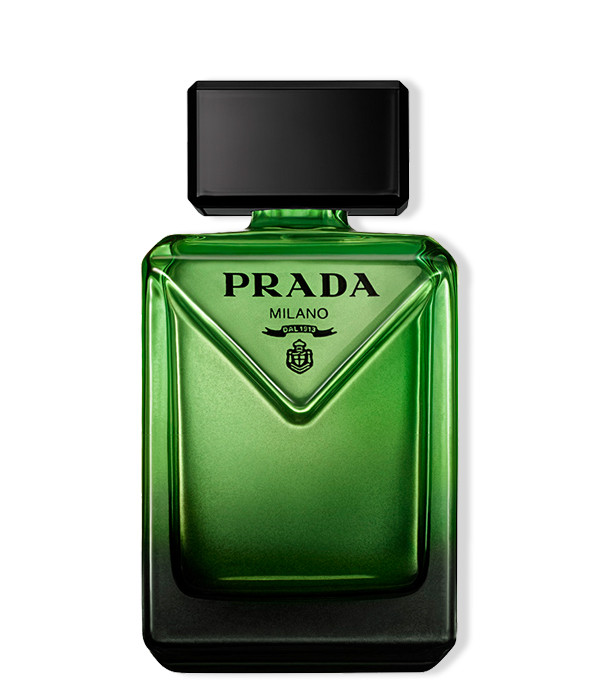El frasco de Paradigme despierta la curiosidad. Una silueta arquitectónica de elegancia radical suavizada por bordes redondeados y una declaración de vanguardia a través del característico triángulo inclinado de Prada. Y un frasco lacado en una intensa y seductora gradación de negro a verde, al color icónico de la casa.La caja exterior está grabada con la firma de la marca en piel Saffiano y firmada con el logotipo plateado de Prada.