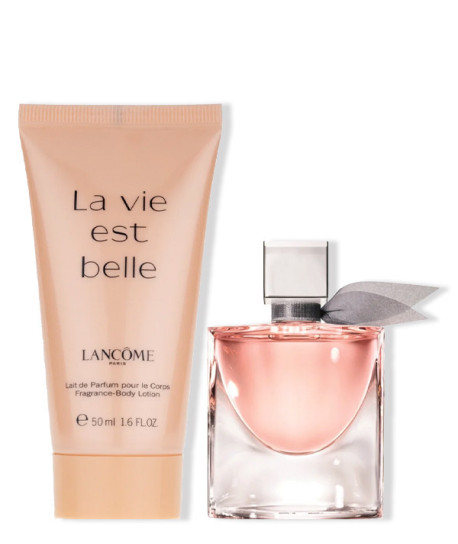 Por compras superiores a 50€ en productos de Lancôme, llévate de regalo este exclusivo set que incluye la miniatura de la fragancia de La Vie est Belle de 4 ml y el body lotion de 50 ml de la misma fragancia.