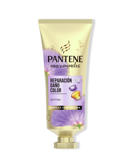Ampolla Concentrada Reparación Daño Color de Pantene Pro-V con Biotina para cabello muy tratado, dañado y con mechas.