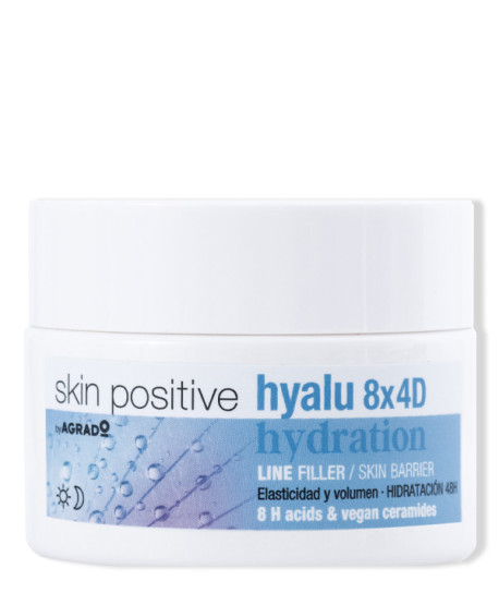 Hasta 15 días naturalesSkin Positive Hyalu 8x 4D Hydration es la crema facial con Ácido Hialurónico 8x que combina de 8 tipos de HA de bajo y alto peso molecular con diferentes propiedades, puede acumularse y penetrar diferentes capas de la piel, para reponer el agua desde el exterior y retener el agua desde el interior.