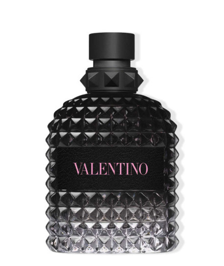 El frasco de Valentino Uomo Born in Roma conserva los simbólicos studs, las tachuelas icónicas de Valentino inspiradas en la arquitectura de Roma, un símbolo muy característico de la firma. En esta ocasión su jugo, el tapón y la etiqueta son negros, y el logo de Valentino es de color fucsia. Un frasco arriesgado y moderno.