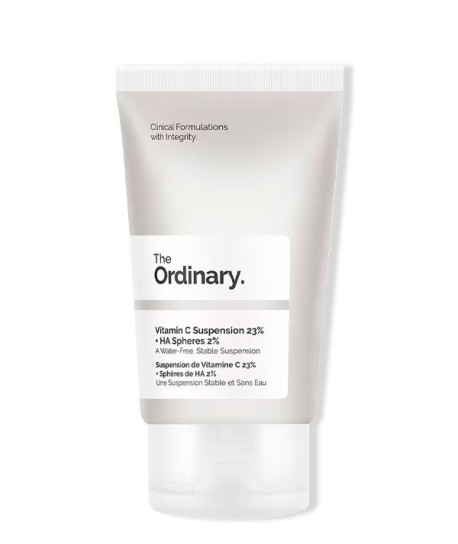 Hasta 15 días naturalesThe Ordinary Vitamin C Suspension 23% + HA Spheres 2% es una potente suspensión deVitamina Ccon esferas deÁcido Hialurónicodiseñada para eliminar los signos del envejecimiento, aumentar la luminosidad e hidratación a tu piel y suavizar su textura.No apto para pieles sensibles.